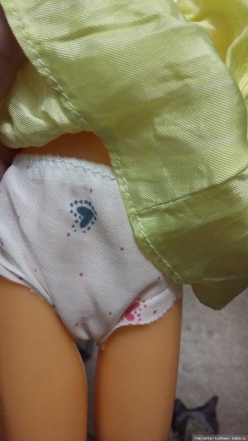 Раздевать куклу я не стал, там просто липучка сзади, достаточно просто задрать юбку