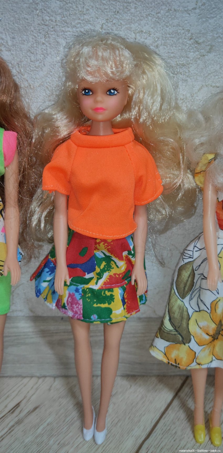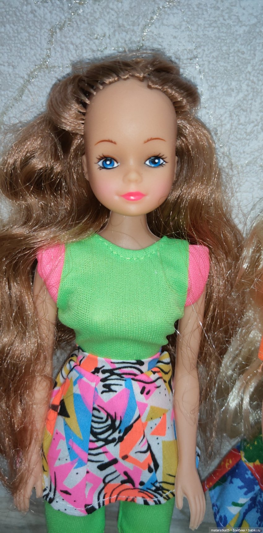Эти куколки были интересны тем что, у них были шарнирные ноги, сгибались в стопе и в коленях. В пору, когда Барби со сгинающимися ножками была заоблачно дорогая, Джуди была не менее интересна и относительно бюджетна. Волосы мягкие, хорошо и качественно прошиты без лысин и пропусков.