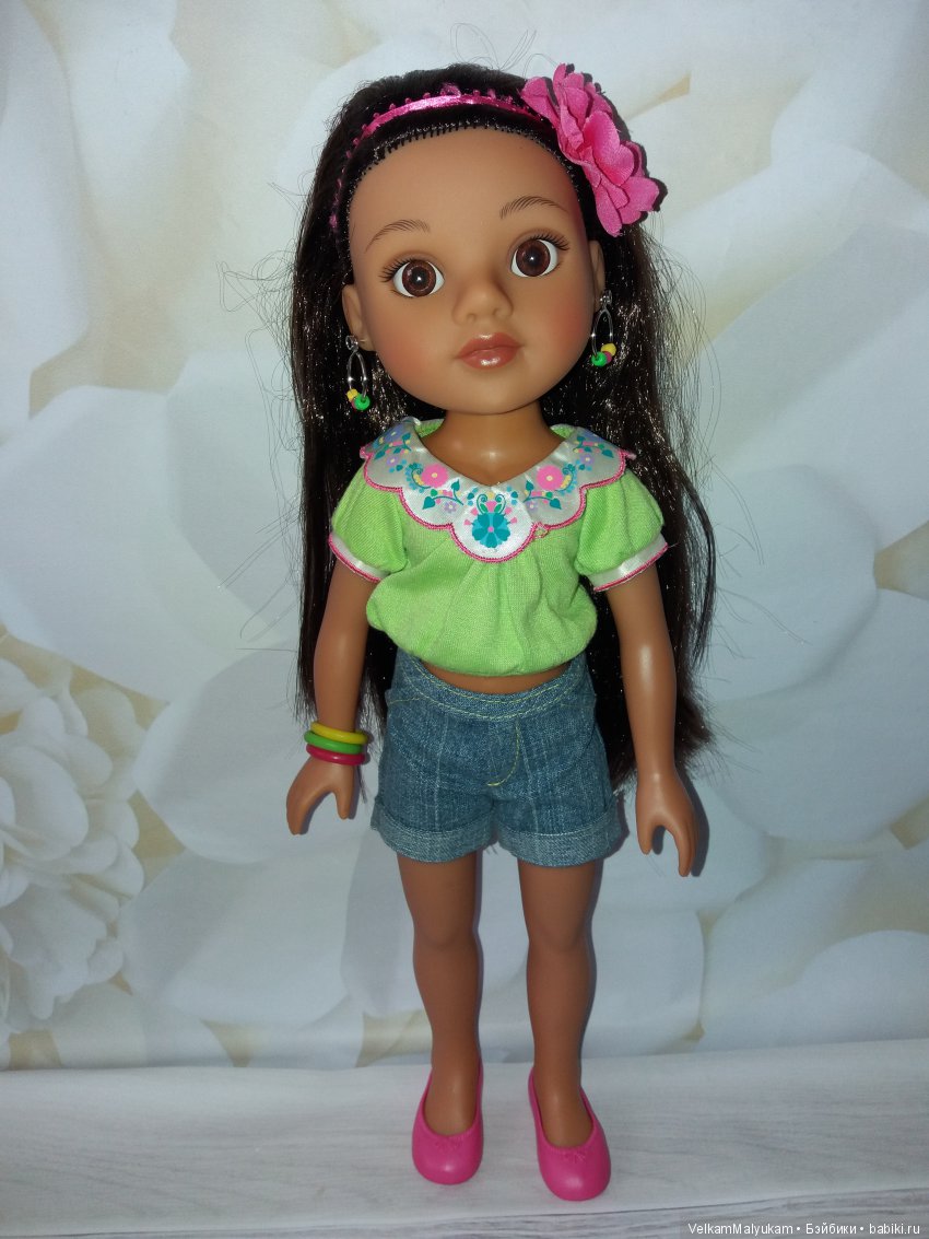 У нас дома только одна Н4Н, индейская девочка Моси. Куплена была для дочки, но та совсем не прониклась почему-то. А мне она очень нравится, как и Ваша Консуэло: волосы хорошие и глазки красивые. С удовольствием приобрела бы ей в компанию Лорис и Делл: обе такие красоточки! — но что-то у нас уже перенаселение кукольное ((