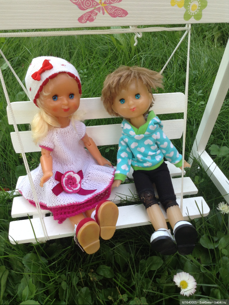 Они у меня ездили в гости к моей подруге Наташе, там получили обновочки)) в общем активно они у нас в игре были. А не давно года два-три назад ещё найдёнка такой случился, в очень хорошем состоянии))) ну вот видимо он чувствовал, как я влюбилась в таких лялек и попался мне на глаза)