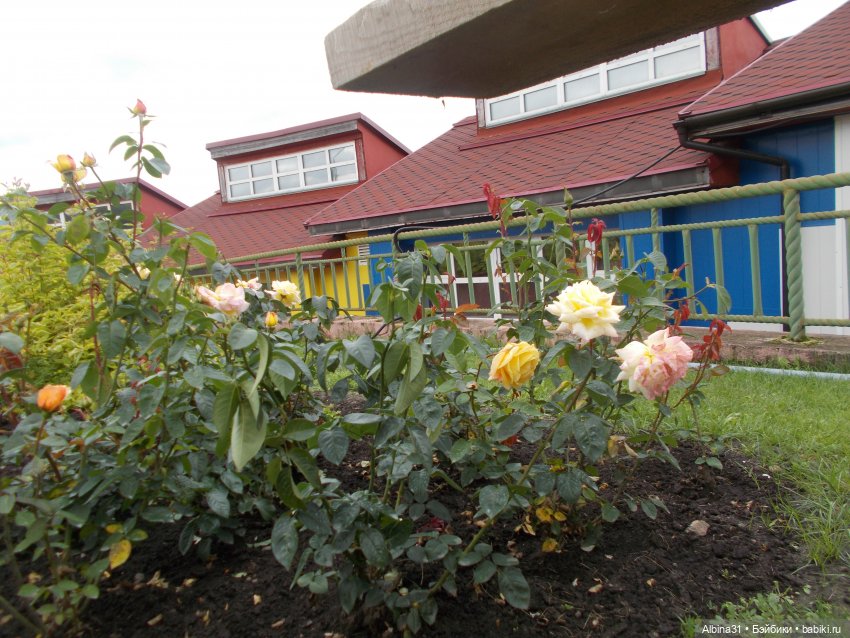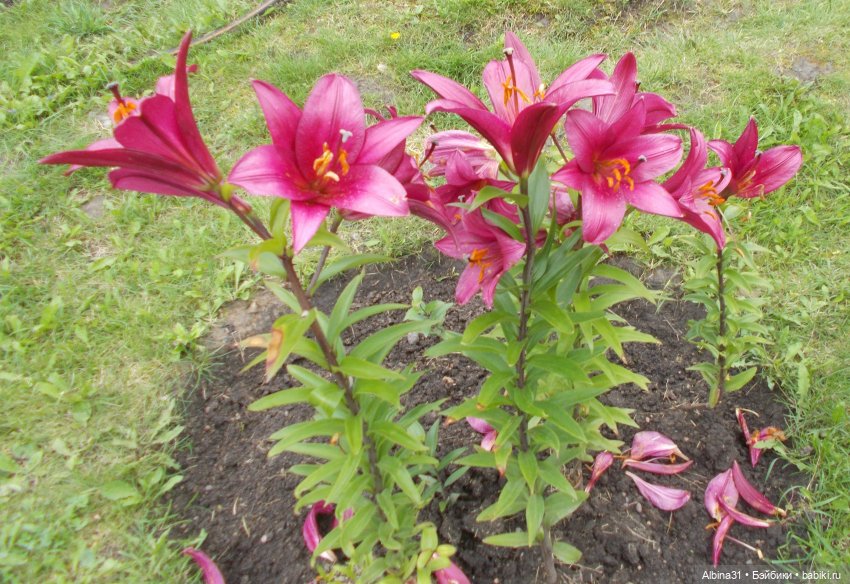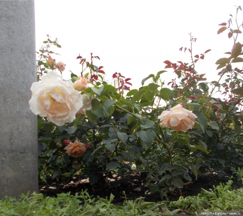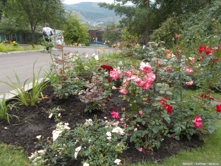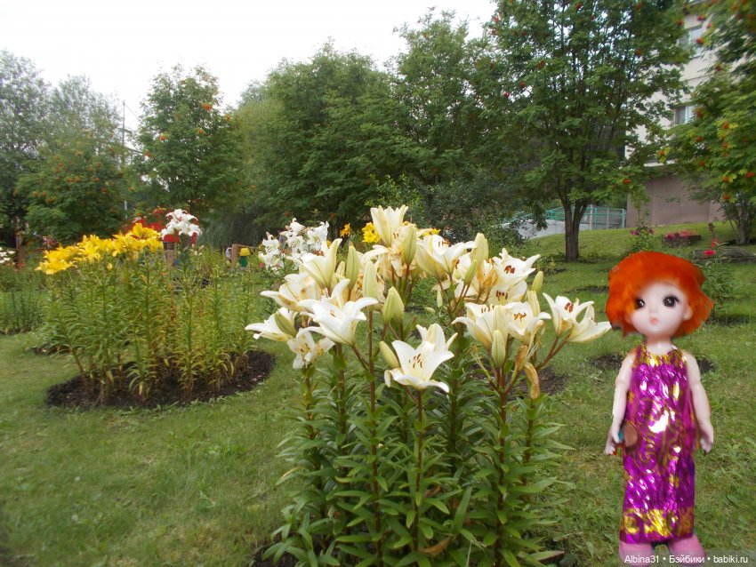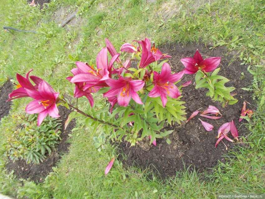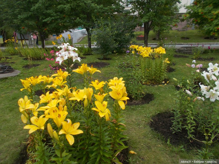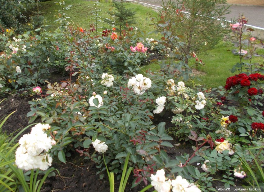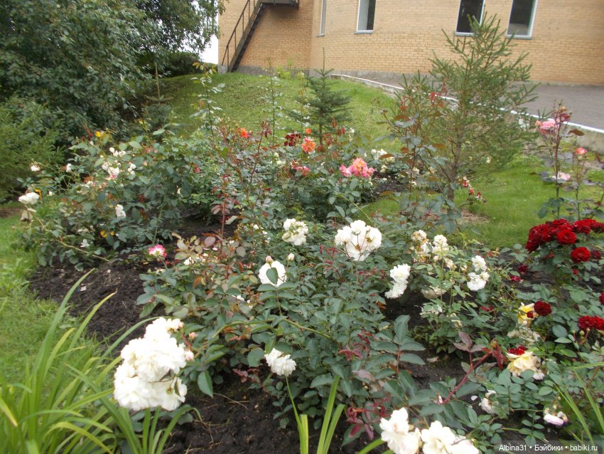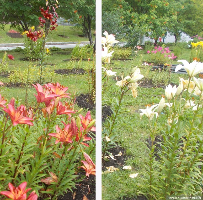 Лилии, розы разных сортов. Розы в большинстве отцветали…