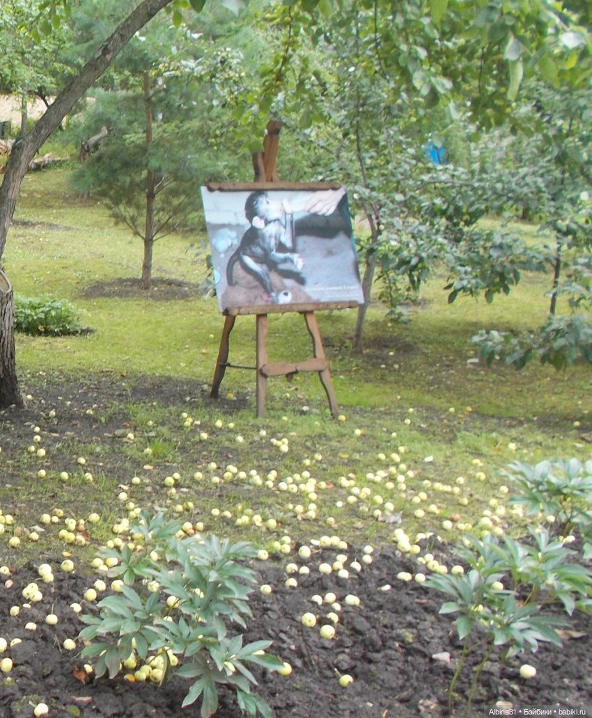 Столько яблок осыпалось.