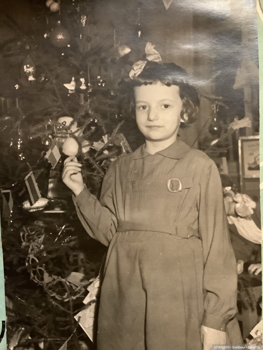 На фото я с мамой возле елки и мне 5 лет.Елку всегда ставили натуральную и обязательно до потолка и тоже в табуретку вставляли ведро с водой.