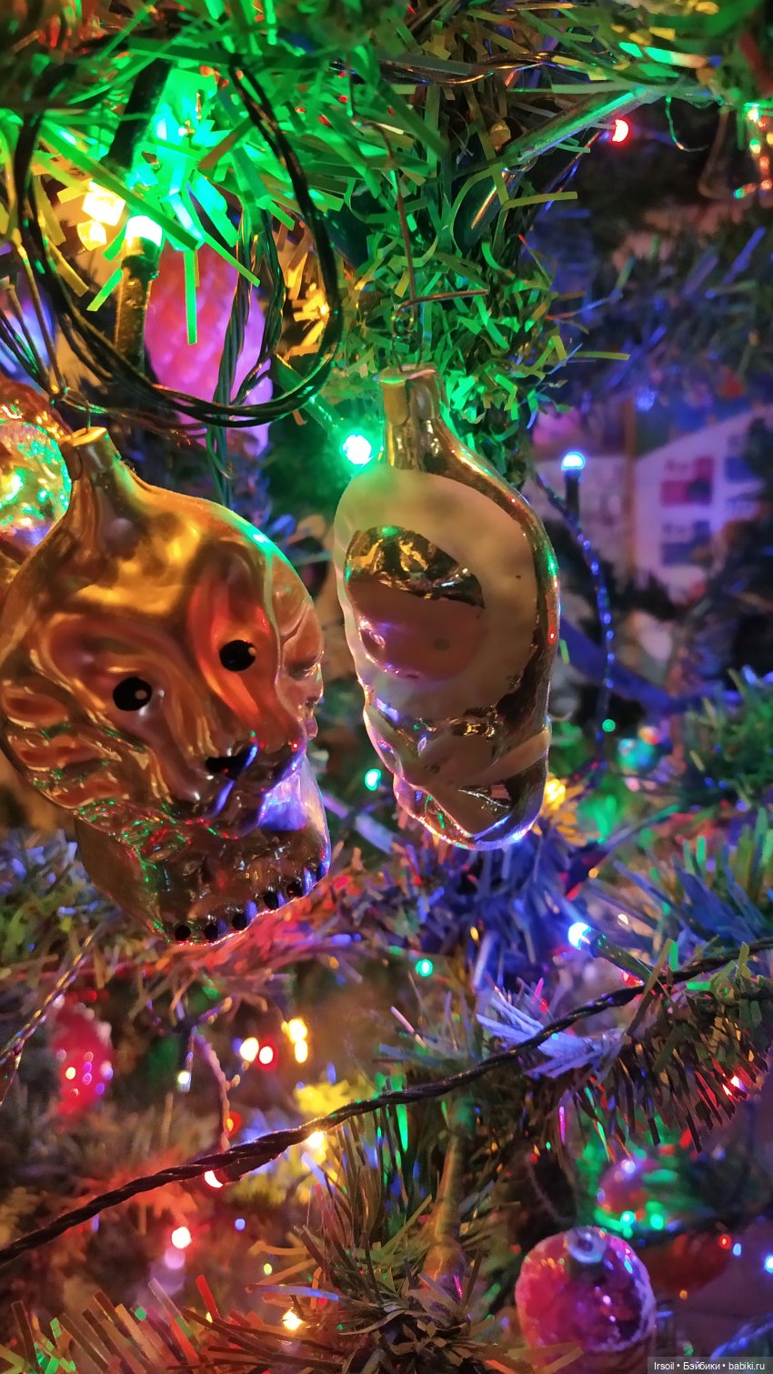 У бабушки с дедушкой наряжалась всегда искусственная ёлочка. Доставалась огромная коробка со старыми стеклянными игрушками, и наряжалась эта елочка. Игрушек было много. Старые советские, очень интересные. Были и огурцы, и ананас, и горошек, и слива. Многие их этих игрушек сохранились.