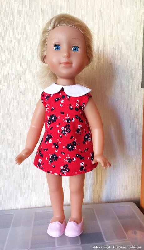 Однако я нашла фото такой куклы в этом наряде, у нее ещё зонтик должен быть. Надо так понимать, что девчушка вышла летом погулять под теплым дождичком.