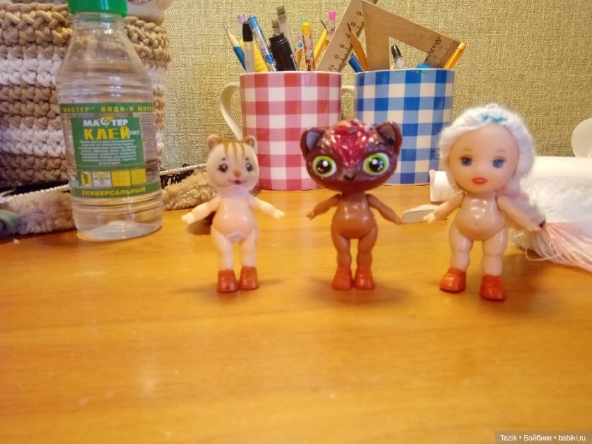 Тельца тоньше, чем у оригиналов, это явно. И материал похуже — на ощупь приятный, но уже кое-где трещины пытаются появляться. Ну, это мелочи — наши руки не для скуки — сода и секундный клей мне в помощь, если что. Выбрасывать не собираюсь, уж очень кукляшки по душе мне пришлись))