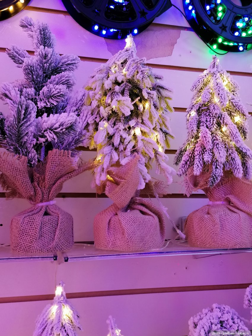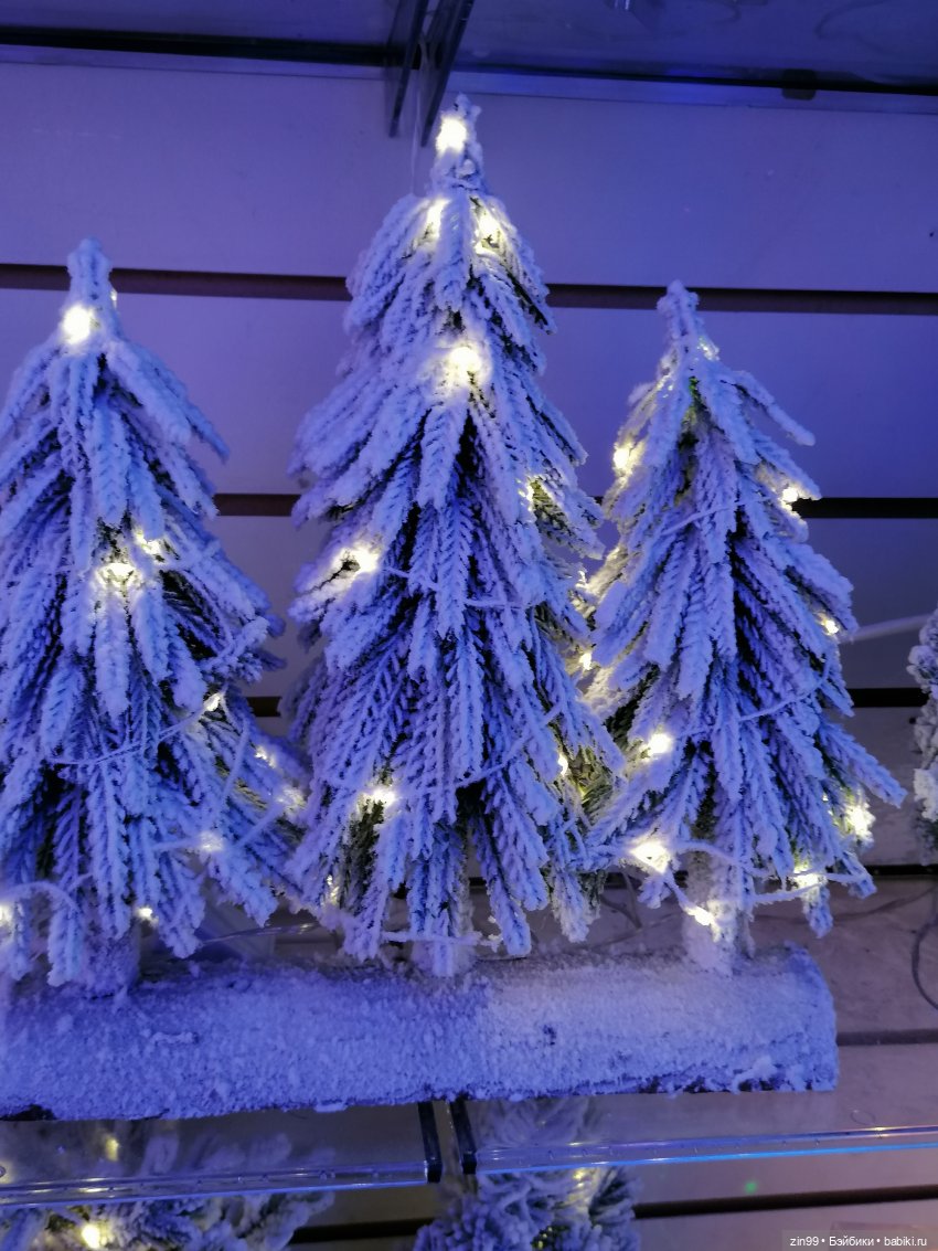 Вот они заснеженные елочки и ели, на любой вкус уже с лампочками встроенными! Новинка сезона, в прошлом году там таких не видела.