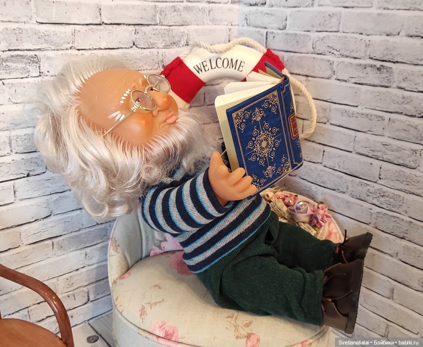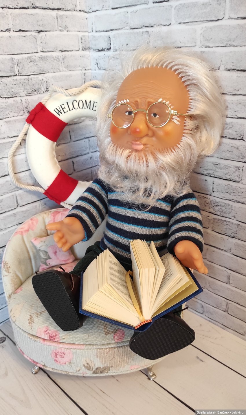 От себя хочу сказать, что всегда хотела в свою разнообразную куклосемью поселить бабушку и дедушку, так сказать старожил и хранителей семейного очага, и теперь очень рада, что они у нас живут. Такие интересные, не похожие на других кукол, домашние и уютные. А как долго я подбирала им наряды! Если про деда я решила сразу, что хочу ему чёрные тренировочные штаны и рубаху, обязательно синюю и в клеточку (такой образ у меня запомнился очень ярко о своём деде), то с бабушкой все оказалось гораздо сложнее, выбор был из многих вариантов одежды. Но в итоге победил тёплый домашний халатик с уютной шалью. Эти образы мы и предоставим на ваш суд.
