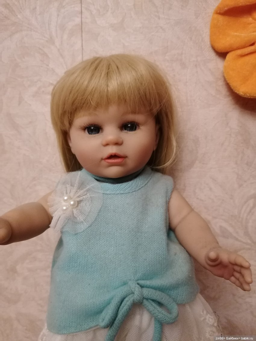 Вместо нее приехала с магазина Империя кукол другая девочка Розочка, другое имя ей не подходит. Она полностью виниловая но ростом чуть меньше 46 см.
