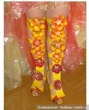 Обувь из бутылок… кажется встречала в инете босоножки :)… Классные костюмы, просто молодцы, такая фантазия!!!