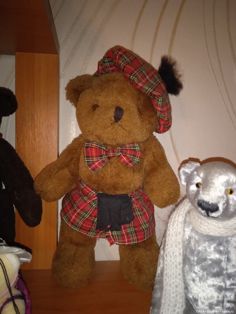У меня так и стоит в своём наряде в шотландском уголке на комоде)
