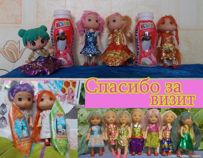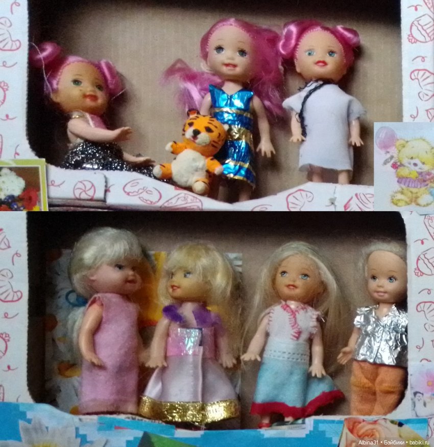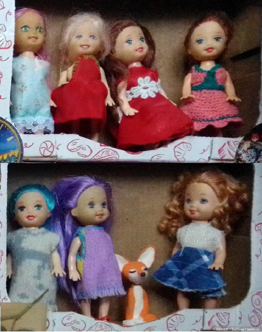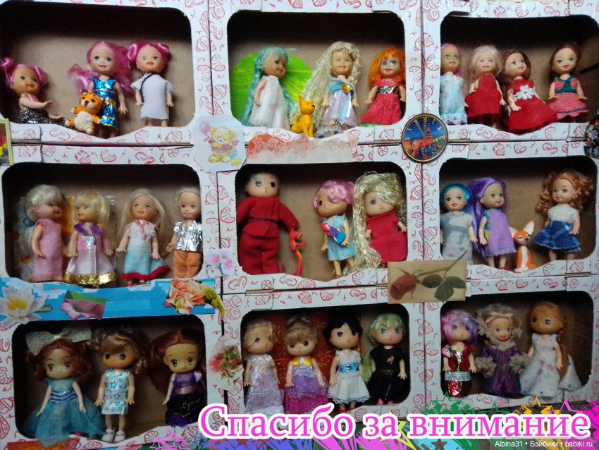 Как-то собрала малышню. Склеила коробки из под любимых пирожных и расставила куклён, но не все собрались :)