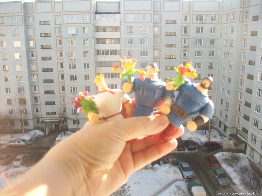 Но во второй половине месяца погода резко изменилась, и стало понятно, что весна уже скоро! А мы героинями мультфильма «Сказочного патруля» и не только с ними пошли в наш парк-лес. Пыталась связать капюшоны к комбинезонам, но не понравилось, что получилось, буду еще думать. Хотя погода позволяла гулять и без головных уборов.