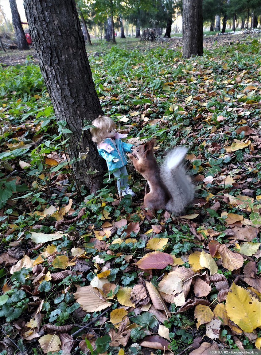 Малыш за нами долго наблюдал и мы его из виду не упускали(наблюдает как мы с другими белочками общаемся)