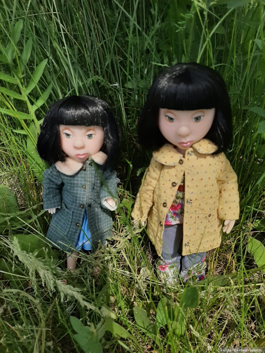 Заказала головушку, ой, две!!! Одной то маловато будет! Приехали… еле еле подобрала к ним глазки( не без помощи профи). Ну а тела у обеих от китайчат, одно повыше, второе пониже. Приодела девчат, из того что было и вот что у меня получилось:)