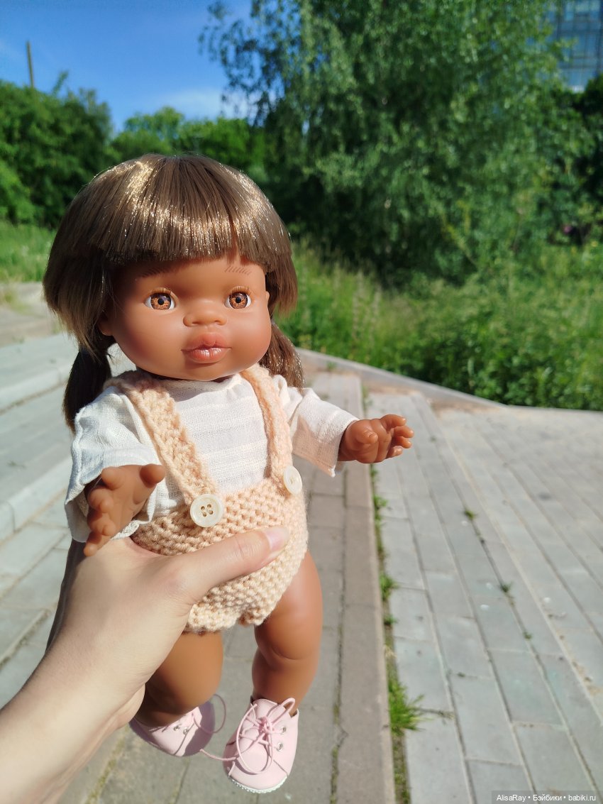 Это удивительно гармоничное создание. Куколка сочитает в себе нежность крохи и законченность кукольного образа. Стоит она прекрасно. Практически вся одежда малышек minikane ей пришлась впору.