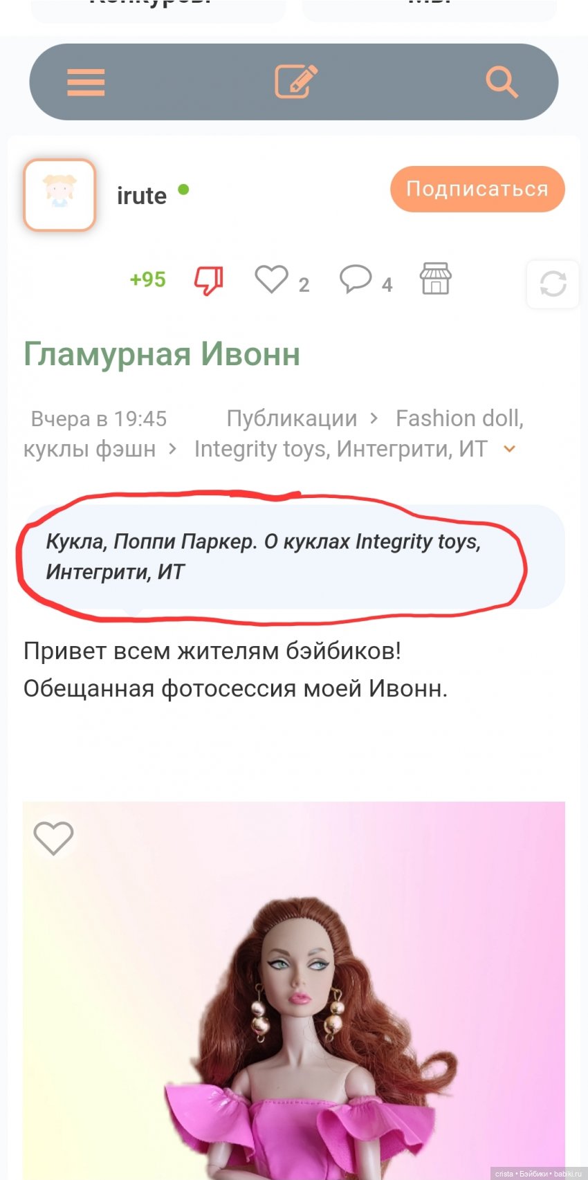 Но я согласна, что стоило в тексте уточнить про псевдопоппи, потому что это не Интегрити. И по разделу тогда, наверное, отнести в «Другие куклы 1:6».