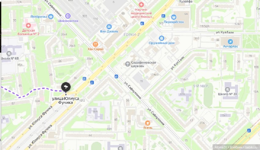 Короче, если ехать от аэропорта по трамвайной линии, то идут остановки Чишмяле, Ломжинская и Минская. Парк наш находится слева на остановке Чишмяле, Ашан слева на остановке Ломжинская, за ним слева же Мегастрой, получается, что он на остановке Минская. Бульвар тогда справа от остановки Минская, если ехать от аэропорта.
