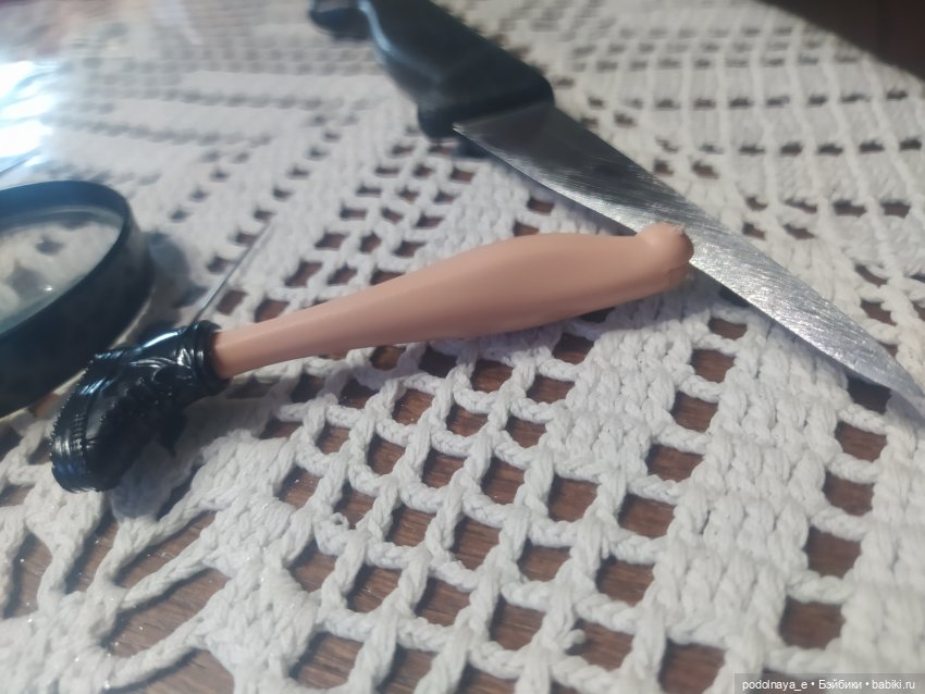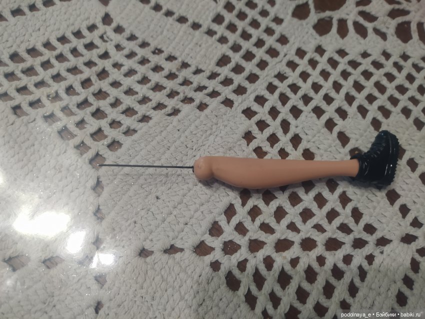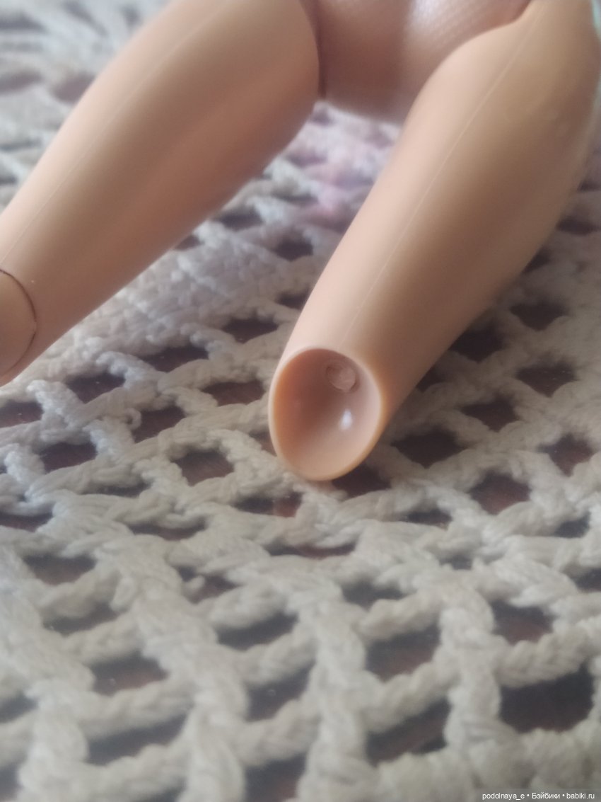 Здравствуйте. Мне тоже посчастливилось забрать кукол у Ирины, списанных по браку в Детском мире. Отломаны ноги, точнее — в колене шарнир не был прорезан, круглый диск по центру колена был как единое целое с боковыми частями. .., поэтому и отломился штырек при сгибании ножки. Прорезала тонким ножом по видимым намеченным линиям, немного бока отогнула в стороны, чуть капнула растительного масла для ,, хода,,. Воткнула шило в отверстие — проверить ,, пошла,, ли эта центральная часть или всё же на месте… Туго, но получилось. Держа плоскогубцами, нагрела иголку над пламенем свечи, газовой плиты дома нет). Раскалённой иглой сделала глубоко отверстия в двух частях, примерно по 5-6 миллиметров.… Далее, нагрела иглу и вставила в ногу. Вырвать её обратно можно только с усилием. Отрезала иглу, оставив примерно 6 миллиметров. И на эту иголочку насадила отломленную ножку, в сделанное отверстие. Всё держится, сгибается, крутится. Фото в комментариях покажу.