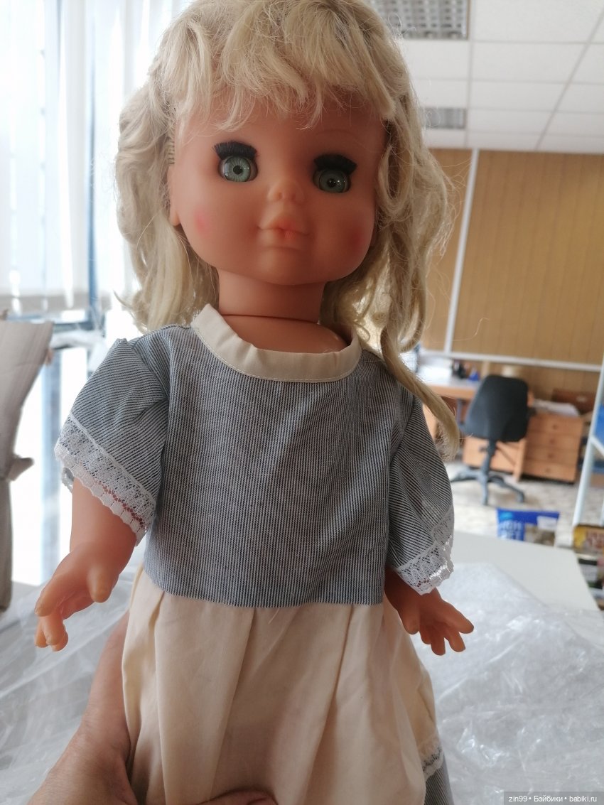 В сером платье очень красивая на фото. Просто радовалась что такая будет и вот приехала, лучше б кукла и не приезжала. То, что на фото хорошо, для кукол ГДР может быть не очень -на деле. Продавец авито, умолчал, что голова шатается и волосы просто все так спутаны, что местами просто пакля.