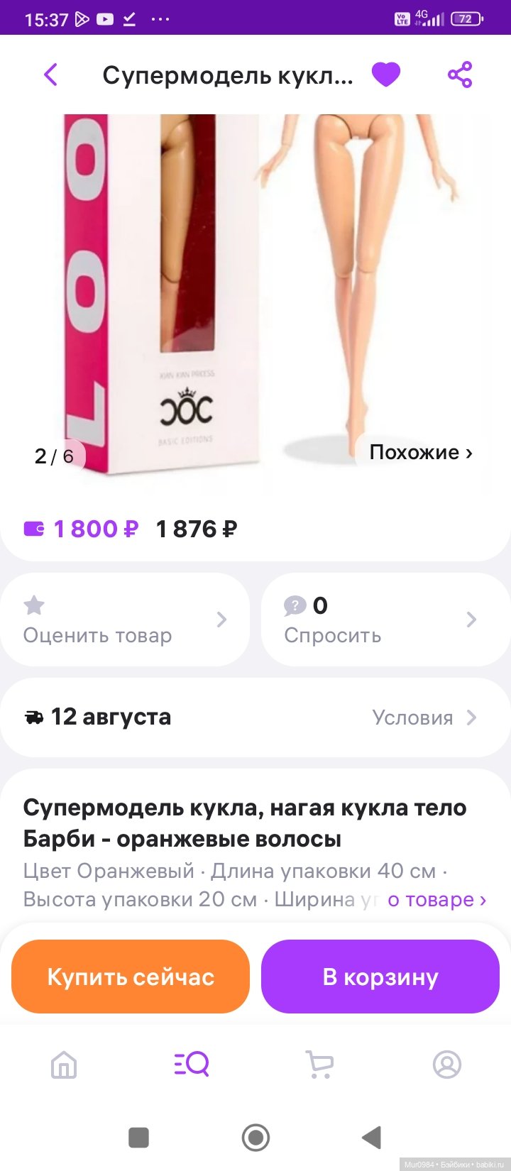Цена вопроса 1375 рублей! Давно я не покупала таких дешевых кукол!