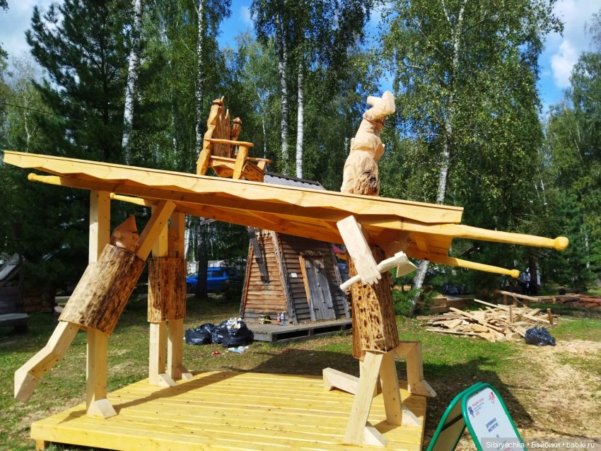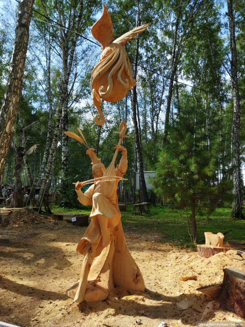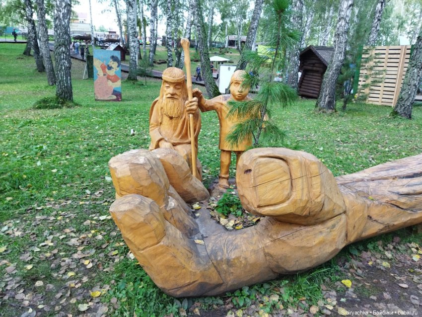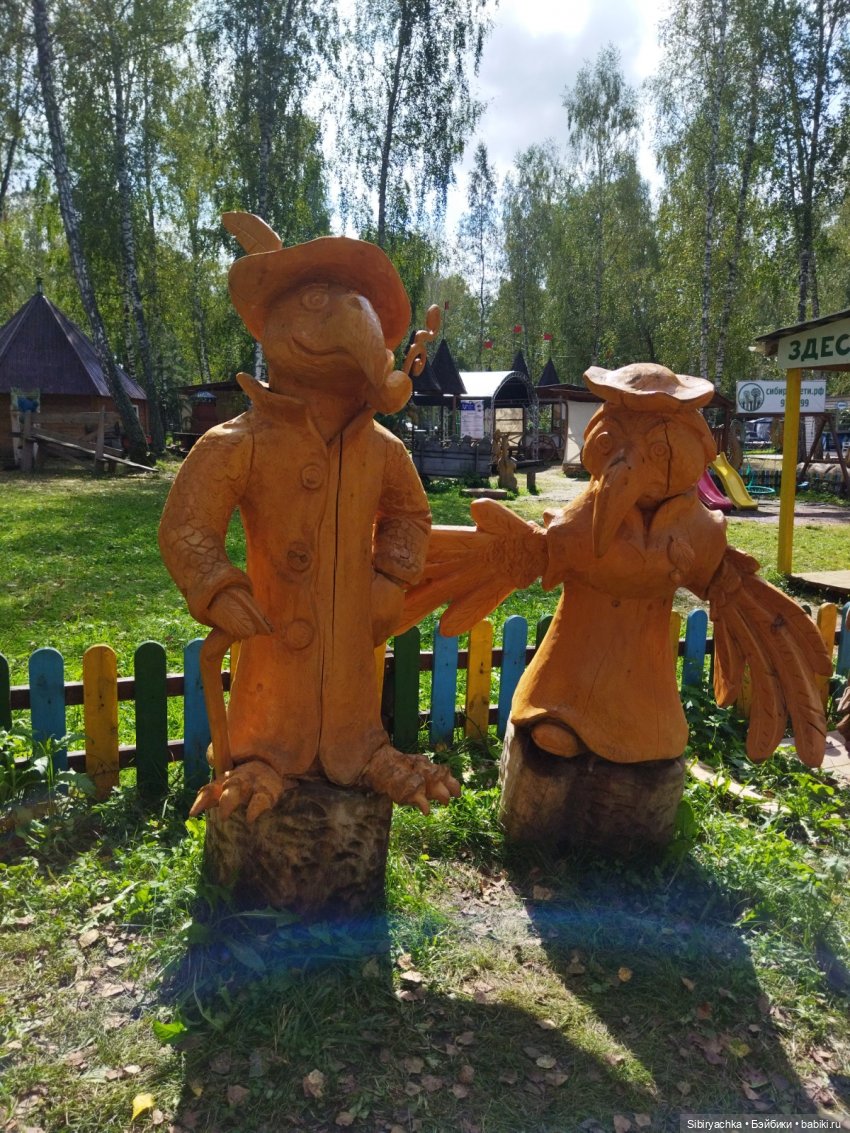 Глаша и Луша с удовольствием фотографировались рядом с новыми деревянными скульптурами.