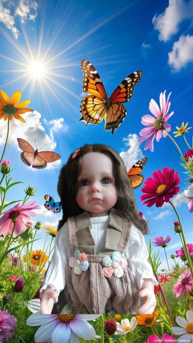 Приехала она правда давно, а показать решилась только сейчас. Она в панамке и в коротком комбинезоне. Конечно фотографировать такую куколку с кривыми ножками, как то сложновато. Да и дачи у меня сейчас пока нет, где б ее смогла куда захотела посадить, там под деревом или на грядку.! Её сложно поставить, в основном она сидит. Но я все же попробую.