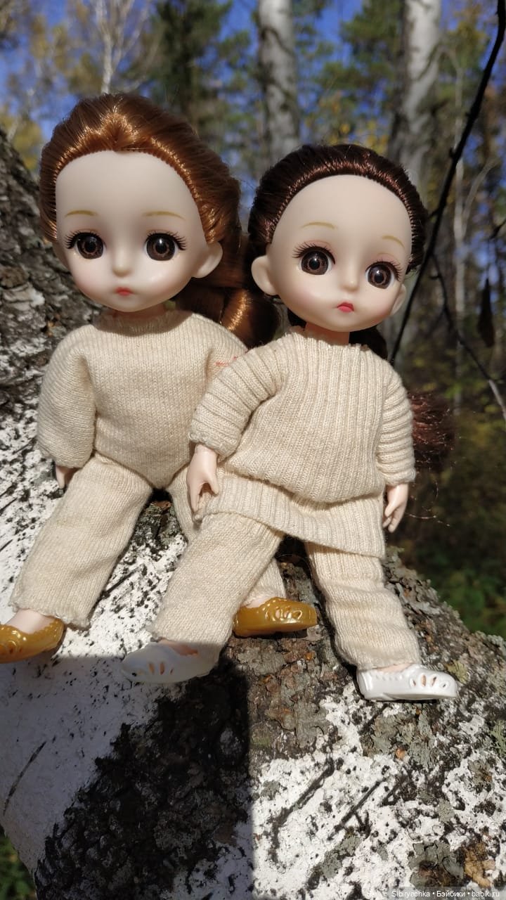 В Сибири сегодня настоящее «бабье лето». Воздух прогрелся до плюс 18 градусов, ярко светит солнце, на голубом небе ни единого облака. Заметьте, на календаре сегодня 1 октября, и вдруг установилась такая чудесная погода.Как можно в такое сибирское тепло сидеть дома? Глаша и Луша быстро собрались и отправились на очередную прогулку в любимый лес. Девочки уже были в лесу несколько раз, поэтому чувствуют себя там очень уверенно. Если в первые разы девочки скромно сидели на пенёчках или поваленных стволах деревьев, то сегодня иногда создавалось впечатление, что на прогулку вышли озорные мальчишки.