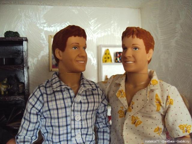 Красавица Инночка и девочка гибрид голова от Пластмастер, тело Весна. И два шикарных мужчины — Кралсон и повар. Всеми куколками занималась Виктория, сшила мужчинам тела, девочек привела в порядок.