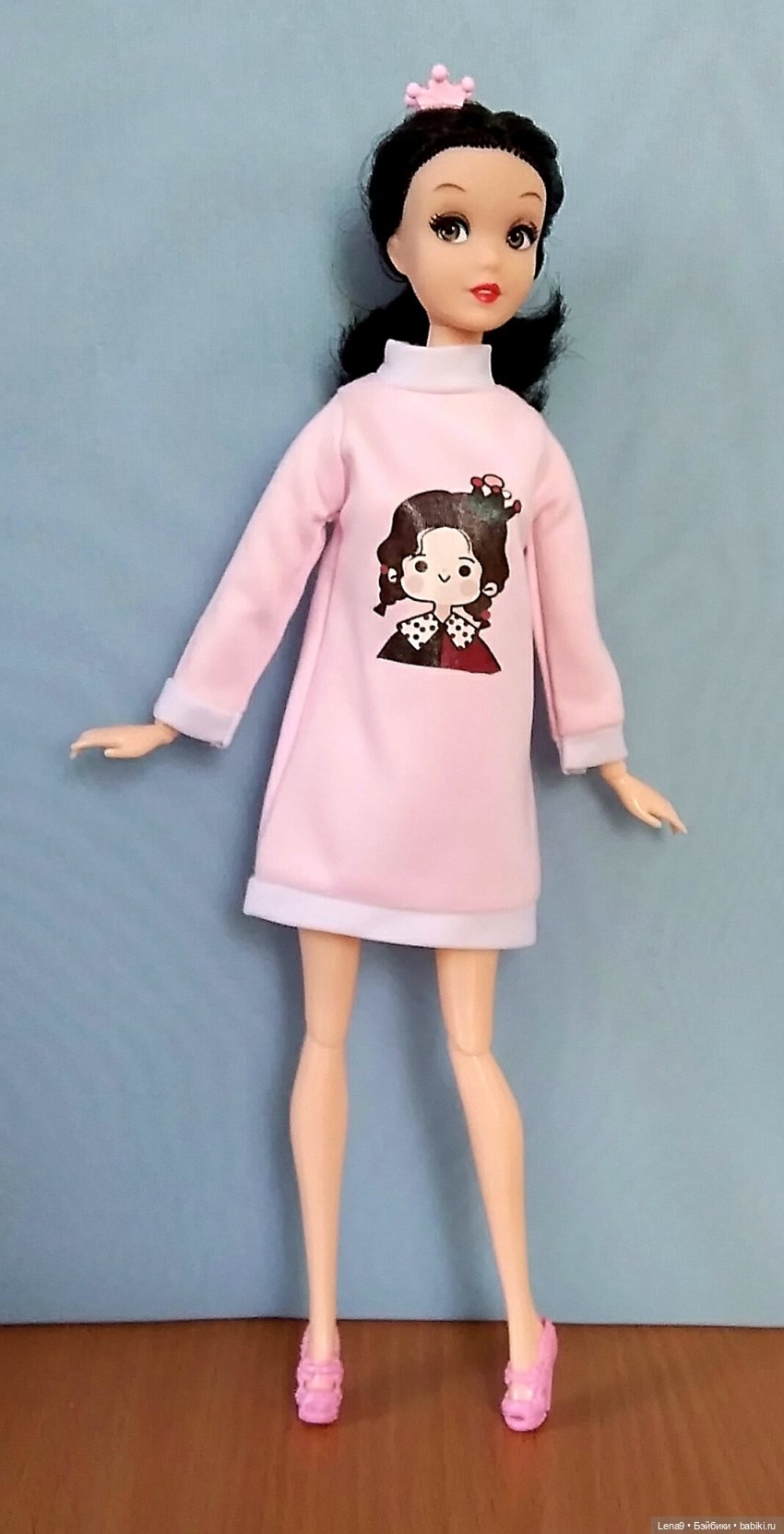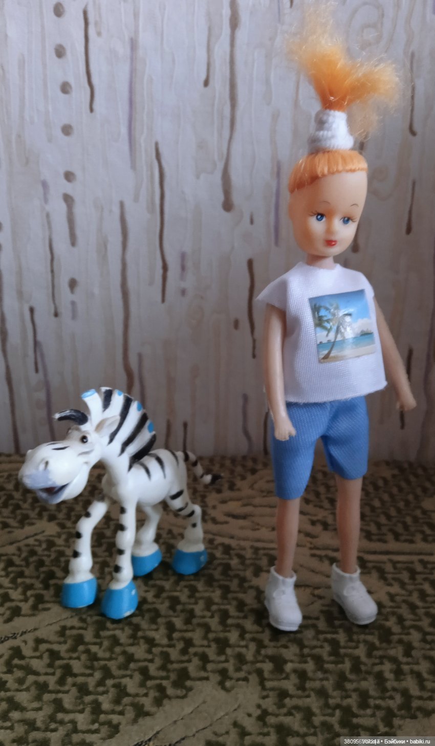 У меня вот такая куколка живёт из лихих 90-х, из детства моей младшей сестрёнки и моего продолжавшегося, я же за сестрёнкой смотрю, я же сестрёнкой играю, мы всех таких и похожих куколок, называли мини Барби, тело дутик, дутиком, подвижные только ручки и головушука, сидеть не может, стопы сестрёнка на вкус попробовала, куколка стоять может и скрыть стопы, только в ботинках, прошивка хорошая, просто мало волос, не густо, но не лысая, просто редко прошиты волосы, но это смотрится хорошо, может когда нибудь, со временем пересажу головушку на новое тело, но есть одно, но, у многих куколок того времени, шейное отверстие такой же величины, как череп, а у современных тел такого уже нет и нужно будет наращивать, что бы хорошо сидела головушка и не спала с шеи. А пока люблю её такой, какая она есть, по-прежнему наряжаю и играю.