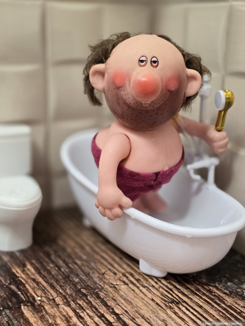Это мой Санька, Санюня, Сашка, Сашок) Самый долго проживающий у меня кукел, который несколько раз выставлялся в шопик по смешной цене, но так и не был куплен( Слава всем Богам!) Убирала его из шопика несколько раз. А всё его взгляд! Нет уж! Не успели-сами виноваты! Никуда не отпускаю!