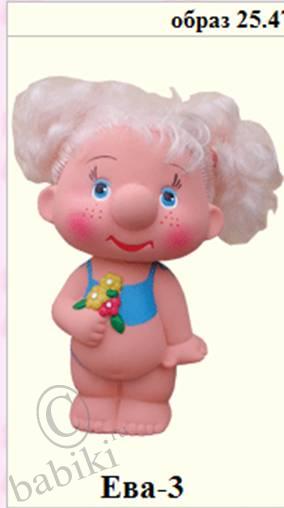 На самом-то деле, задумана она очень неплохо: пальчики, складочки, «волосики», глазки закрывающиеся — всё проработано. Но голова крепится отвратительно (получается горб) и материал(резина?) местами шершавая (муж шутит — целлюлит), местами с другими дефектами… Но это уже, наверно, вина изготовителя, а не разработчика.