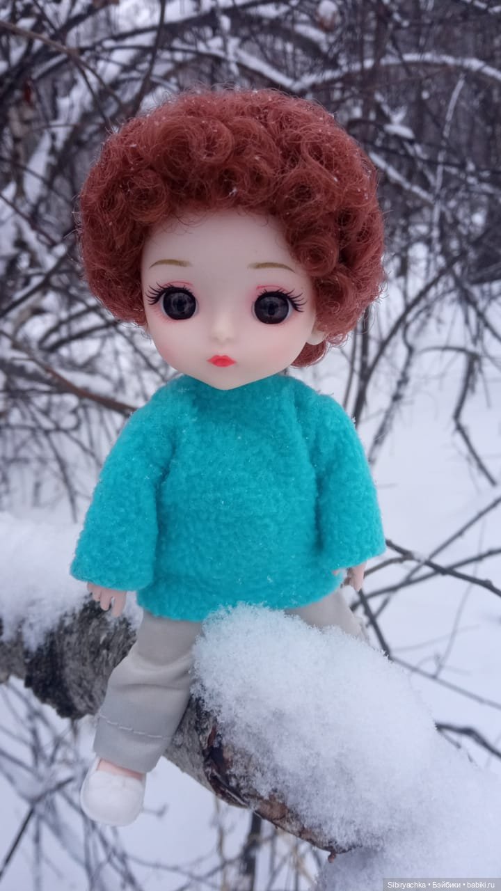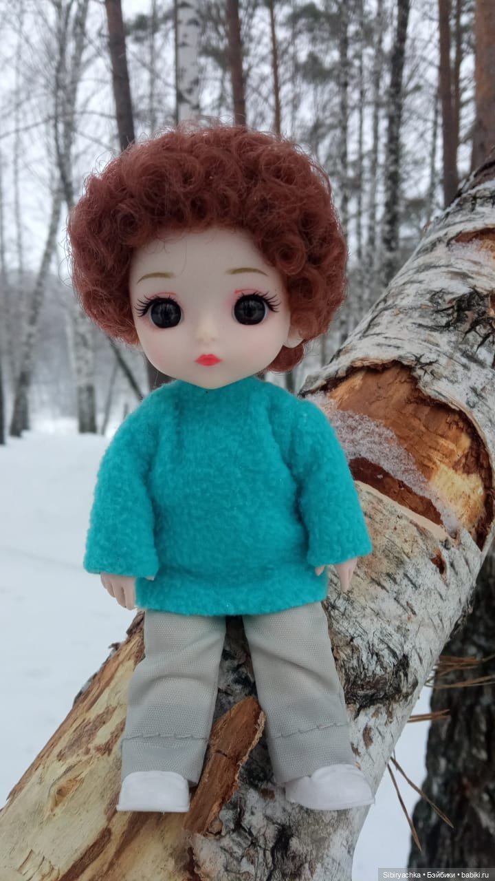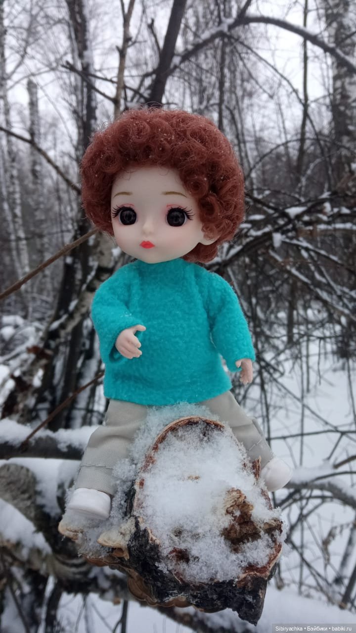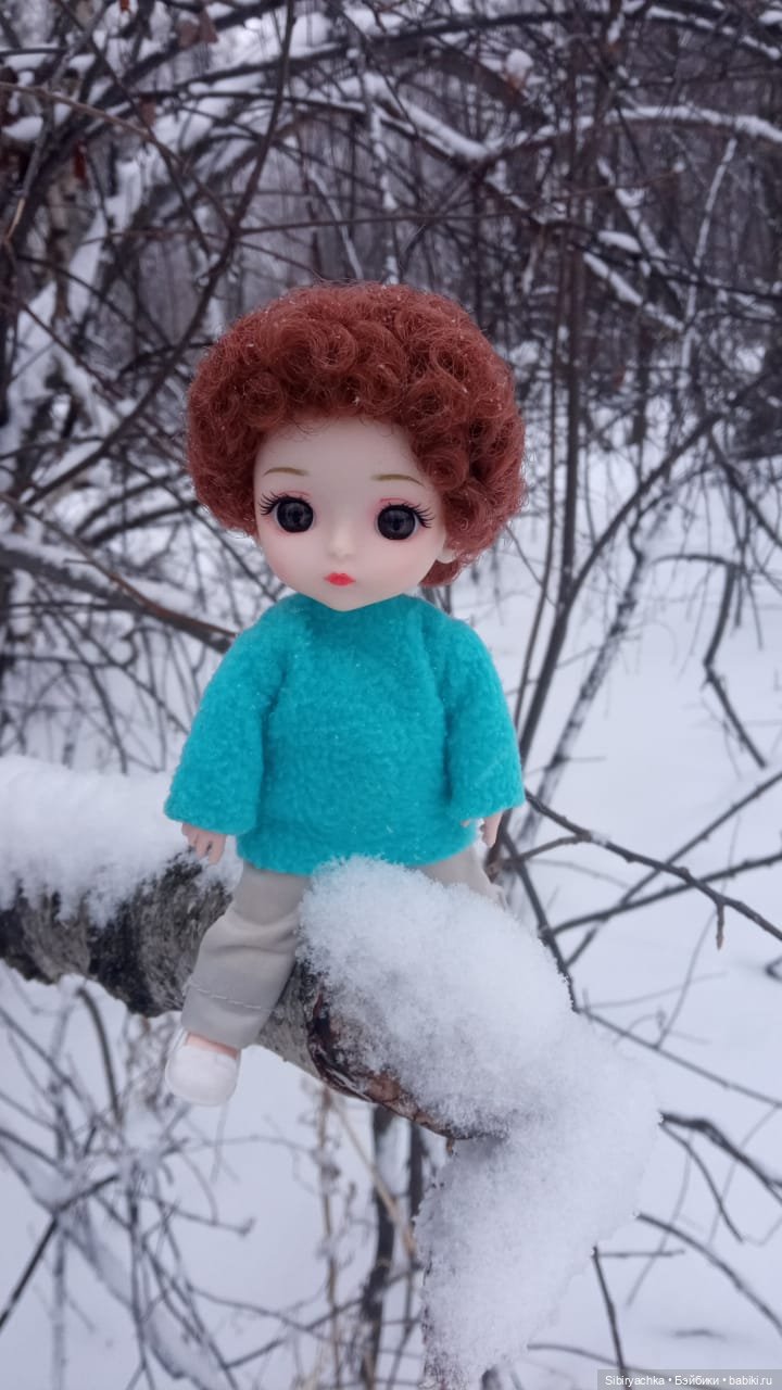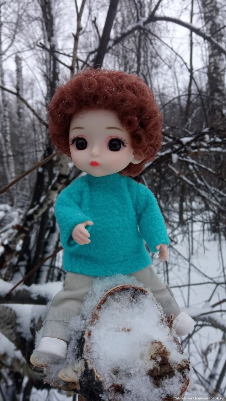Здравствуйте, дорогие любители кукол! Несколько дней назад мы гуляли с Васильком в лесу. Солнца в тот день не предвиделось, небо было серое, падал мелкий колючий снег, дул холодный ветер, но мы всё равно отправились в лес на прогулку. Тропинки в лесу были сильно переметены, и нам иногда приходилось перебираться через сугробы, но разве это могло нас остановить.