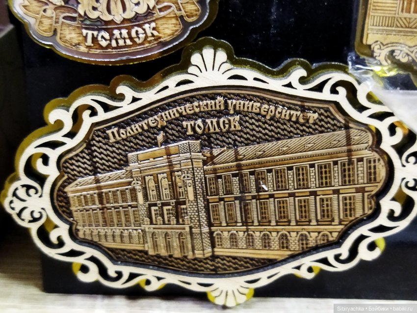 В отделе можно купить шикарные деревянные магниты с видами Томска, посуду с изображением ягод и орехов и чудесные сувенирные валенки.