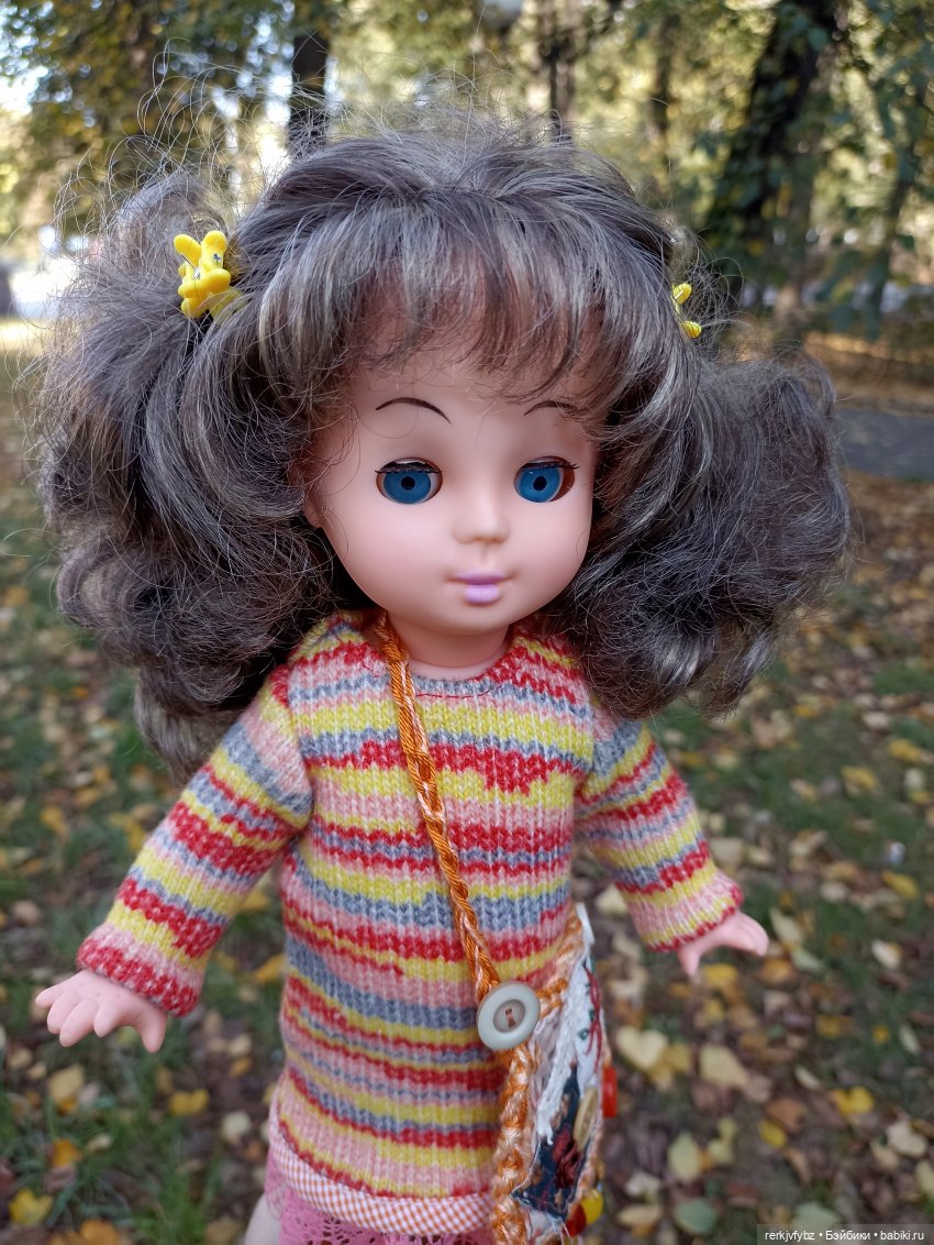 Куколка приняла ванные процедуры, я заменила ей глазки и завязала хвостики. Платье и туфли связала. Вот какая она получилась.