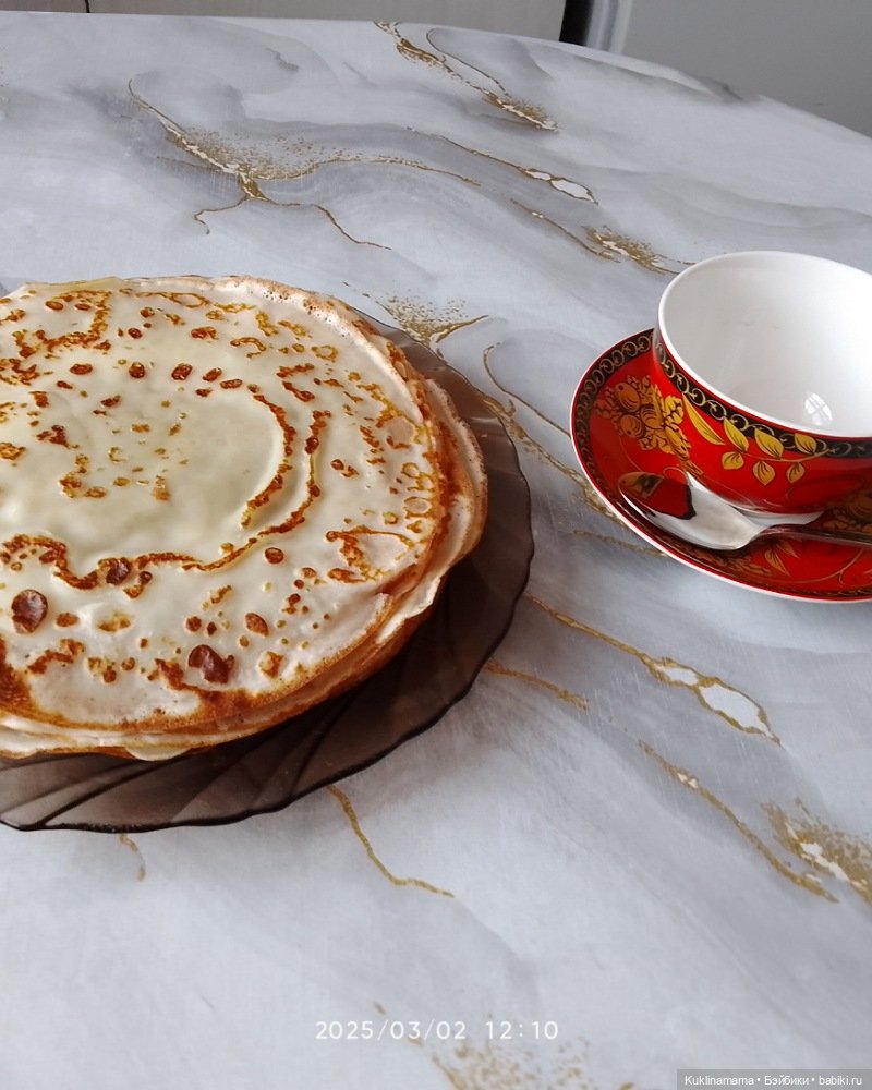 Глаша сегодня первый раз в жизни попробовала блины с абрикосовым вареньем. Они ей очень-очень понравились!