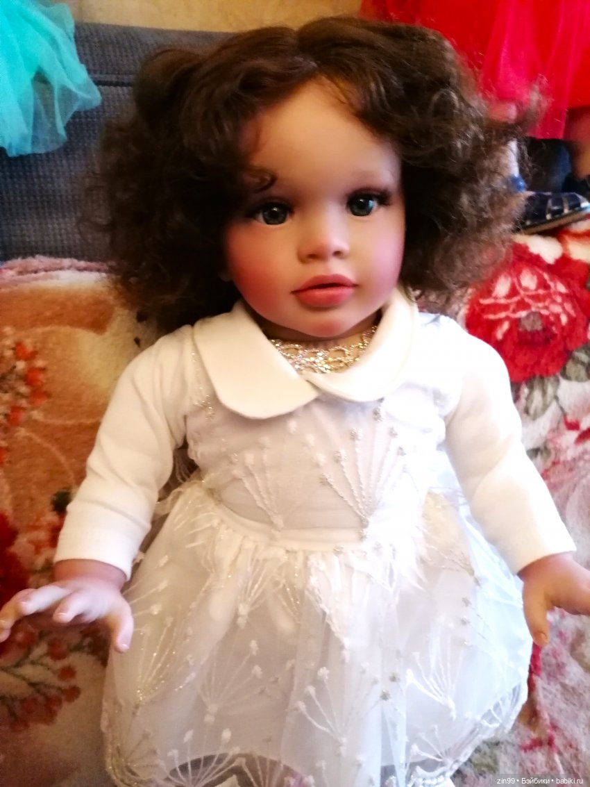 Тамарочке долго образ не могла найти, точнее одежду, что ей идет. В белом хорошо, помыла ей волосы и она стала как одуванчик, волосы не распрямились, а завились.