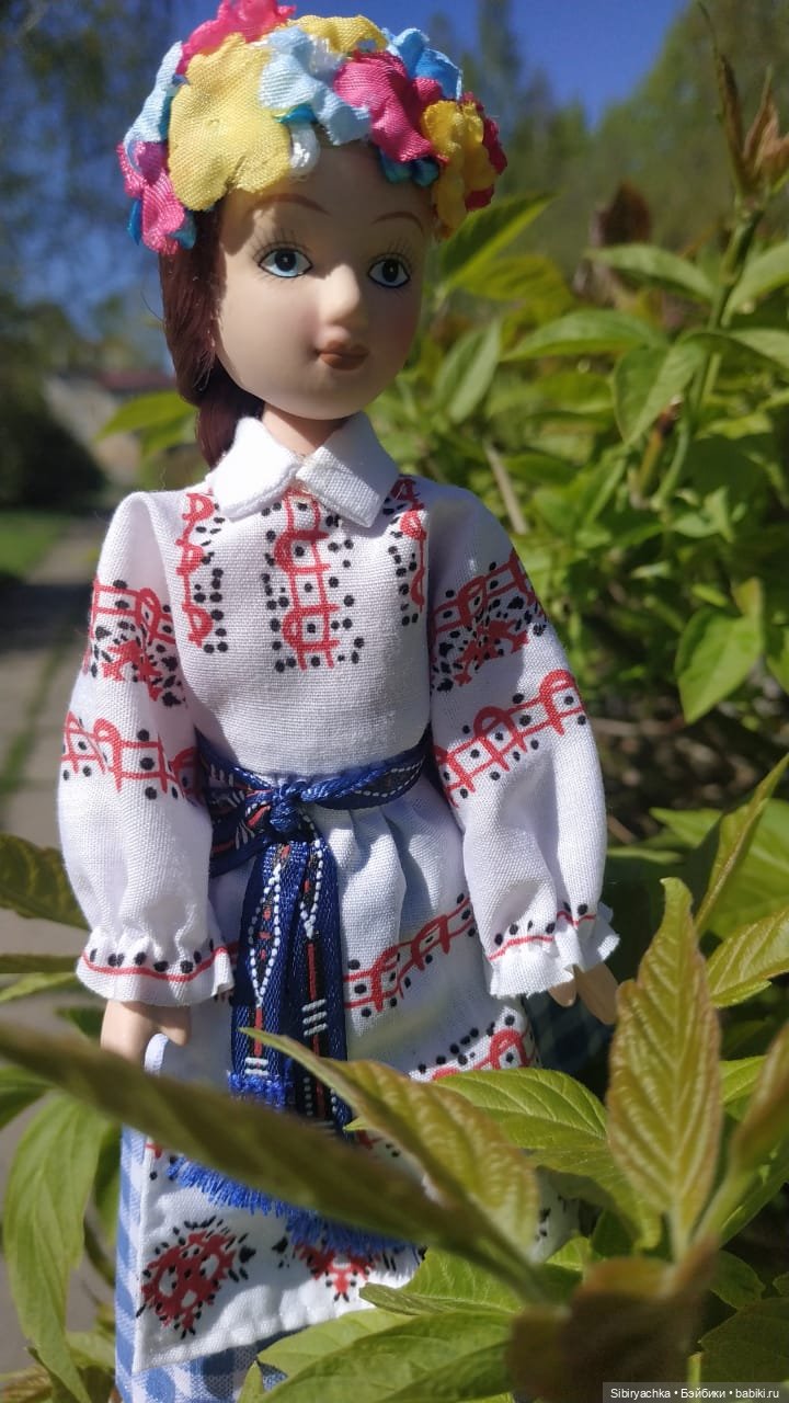 Маняша одета в девичий костюм Витебской губернии. Конечно, уже нет никаких губерний, но память людей хранит своё прошлое, поэтому Маняша и сегодня имеет право показать красоту народного костюма.