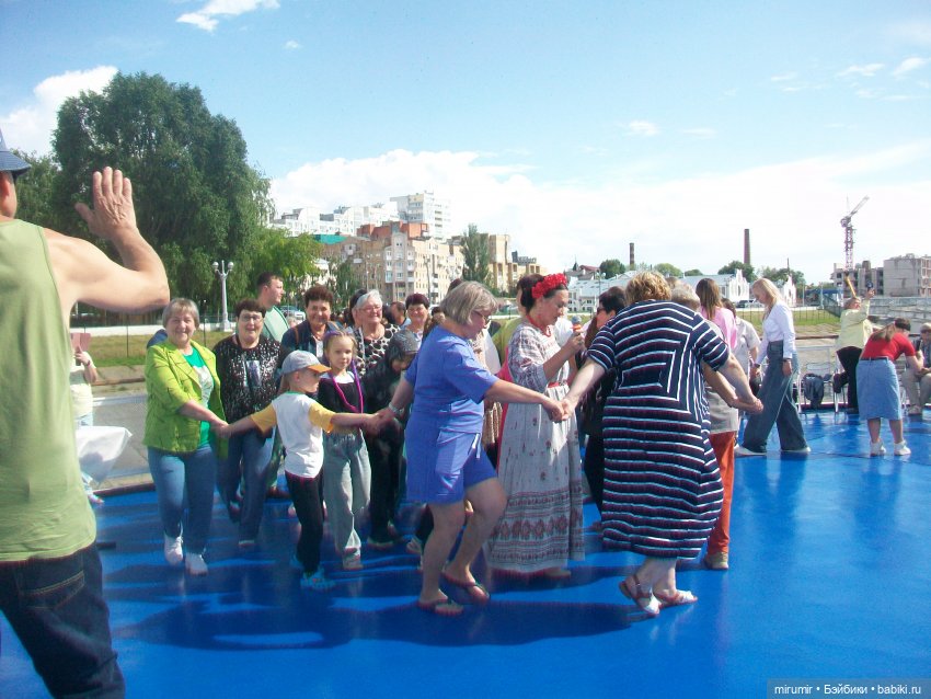Тем временем наш теплоход готовится покинуть гостеприимную столицу Чувашии, и нам машут с пристани горожане, а на средней палубе под музыку происходит вот это!