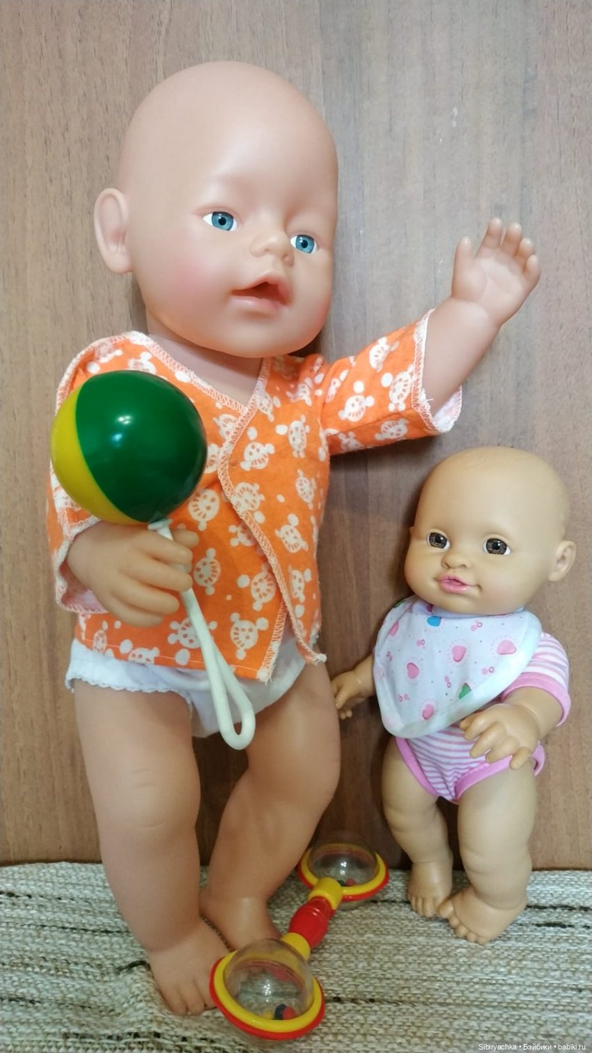 Маленький пупс 23 см, большой 38 см.
