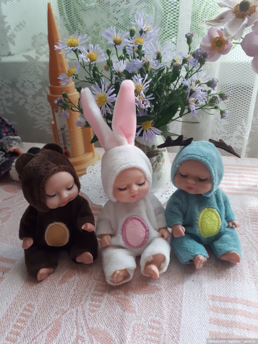 Увидела их и влюбилась. Я предпочитаю взрослых кукол, а тут прямо пупсики! Но такие лапочки! Конечно, купила! Зайку себе оставила для фотосессий. Медведя дочь забрала. Дракошу мастеру маникюра подарила. Остальные стоят. Ну они такие милахи!!!
