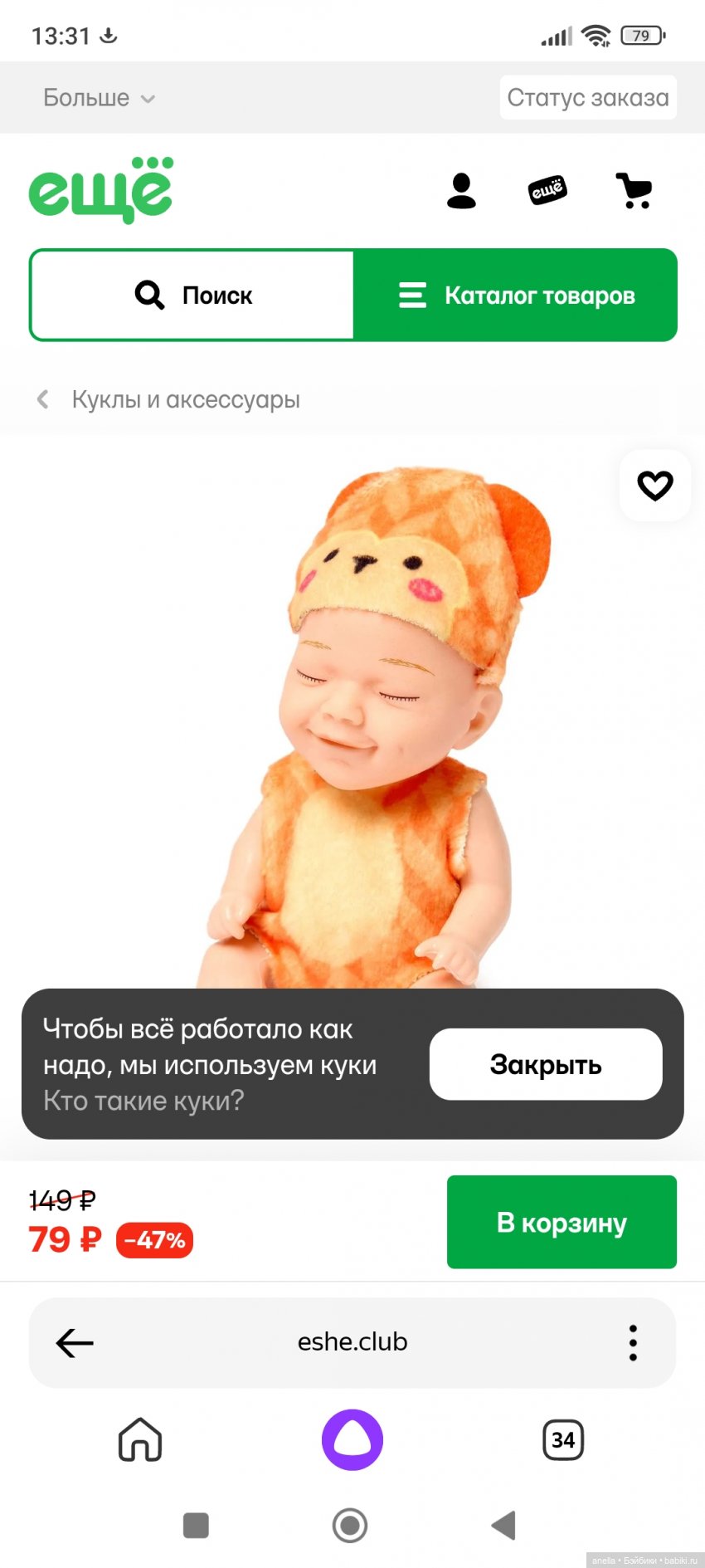 Специально позвонила маме узнать как называется тот магазин, где купила эту лялю — «Ещё», не знаю есть ли у вас в городе 😉