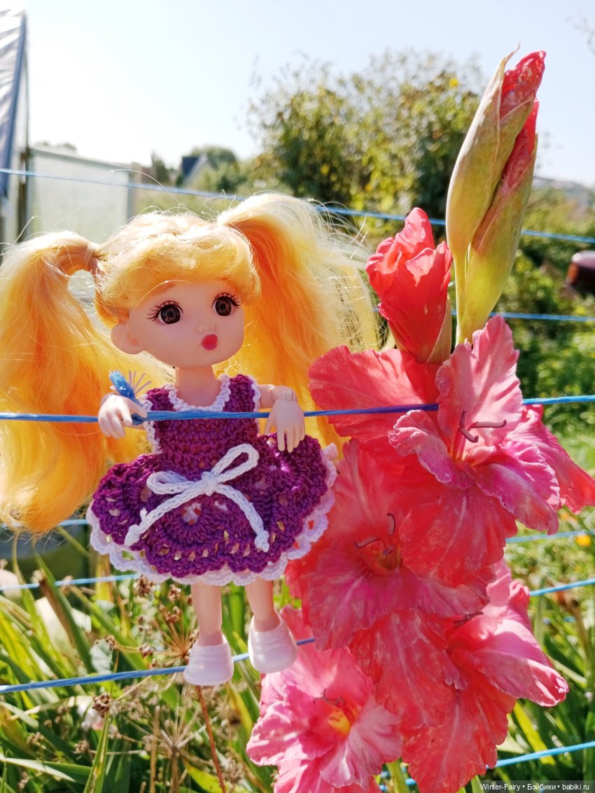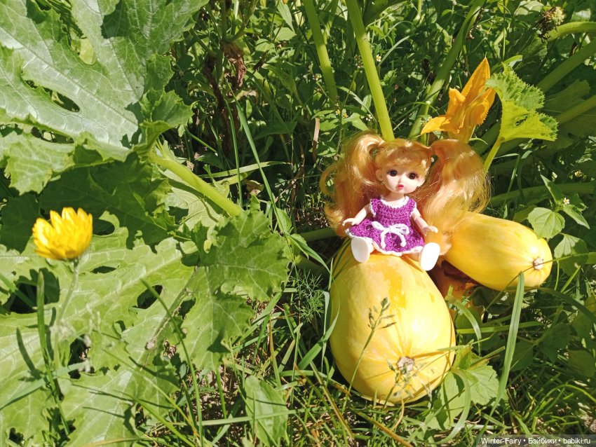 В конце августа мы были в гостях у маминой подруги, надо было ей помочь. Я конечно взяла с собой Алису и фотоаппарат) У меня нет цветов, поэтому то у мамы, то у её подруги фотографирую куколок))