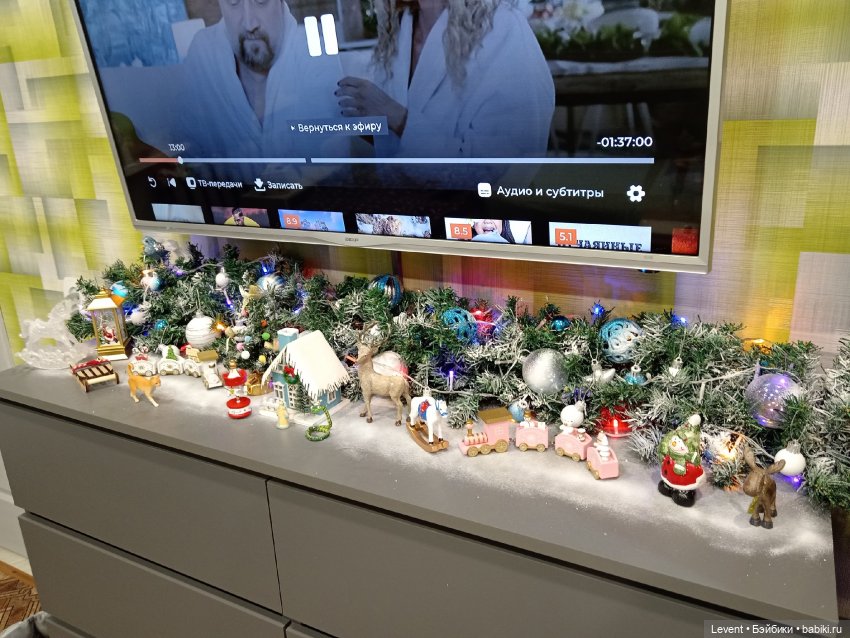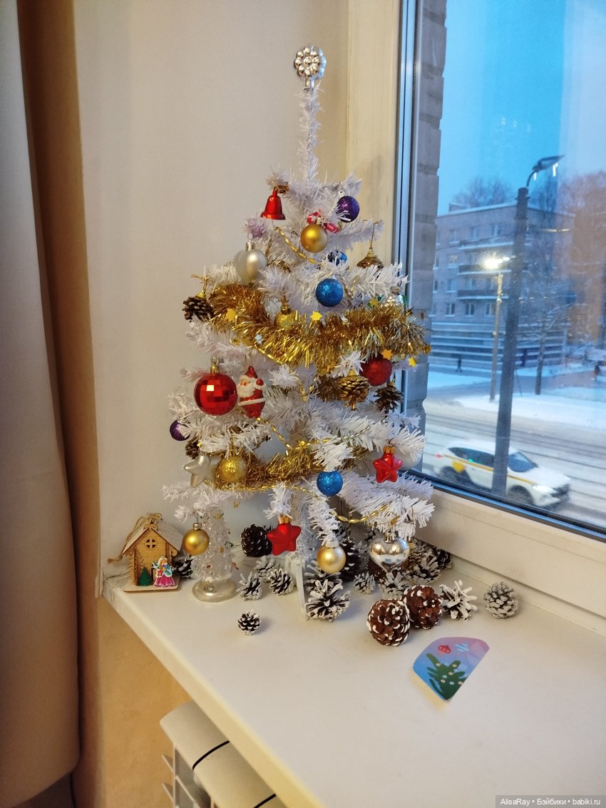 У нас просто веточка украшена, маленькая ёлочка на кухне и вышитая ёлочка)