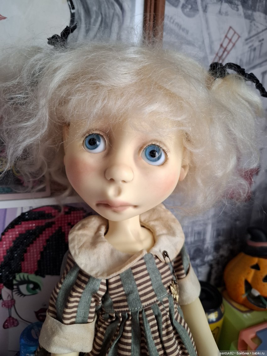 Сразу видно, что кукла любима.Не сиротка уже.Тоже нравятся необычные.Этот взгляд 😊.