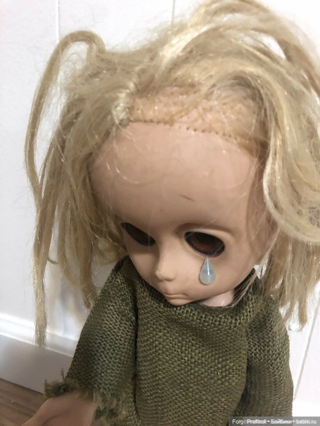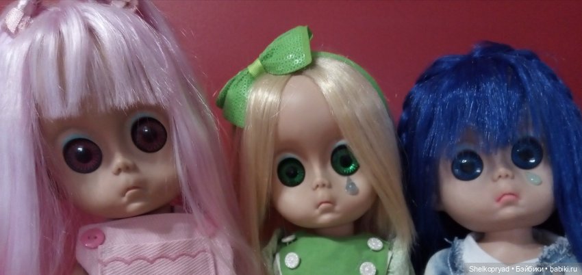 Да, удивительно, такие одинаковые и разные. Со слезкой повезло и сама куколка целая, даже родная одежда в наличии, хоть и ветхая, а вот волосы очень плохи, местами отсутствуют, но перепрошить никак не решусь.