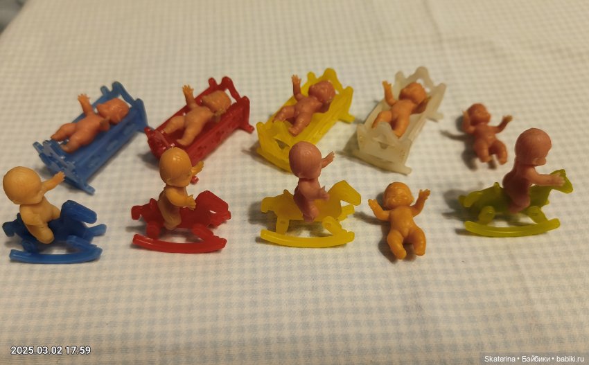 Добрый день. Я очень люблю микро, мини пупсов. Желательно меньше 5 см. Вот моя часть коллекции.Самые желанные это пупс из яйца СССР мальчик и девочка резиновые, шли с кроваткой или лошадкой в комплекте.