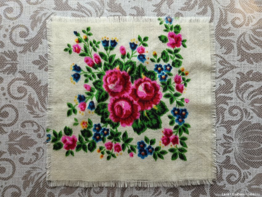 Платочки можно на Авито купить, надо только с мелким узором выбирать. У меня уголочек такого платка. (Там, правда, иногда продавцы такие цены за них ломят! Но есть и вполне адекватные). Попробуйте забить: «Платок винтажный шерстяной».