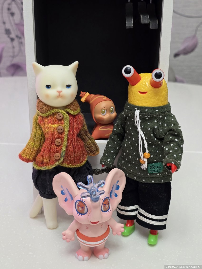 По непонятной причине он вписался в эту странную компанию: котик Азоя (Azoc), девочка Кози (Magic Charm Doll) и авторская собача Патиссон. Теперь с ними ещё и Олег)) уже чудит, но всех всё устраивает.