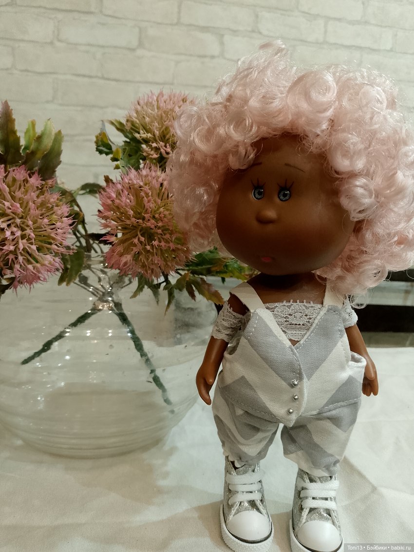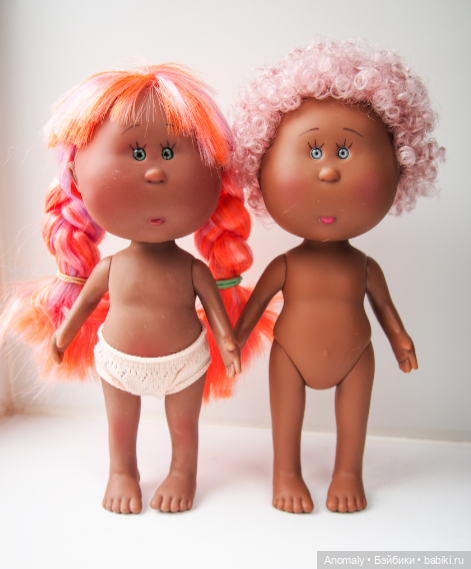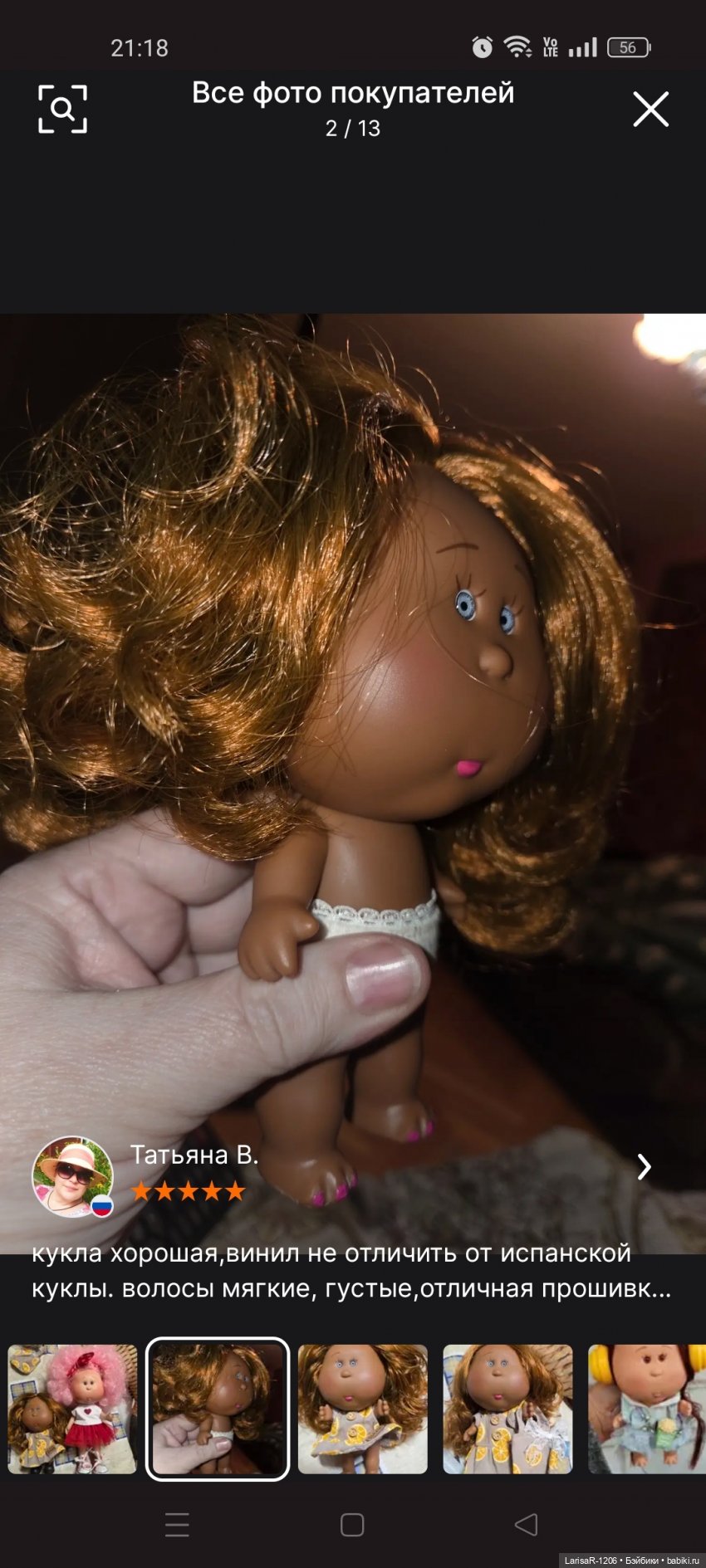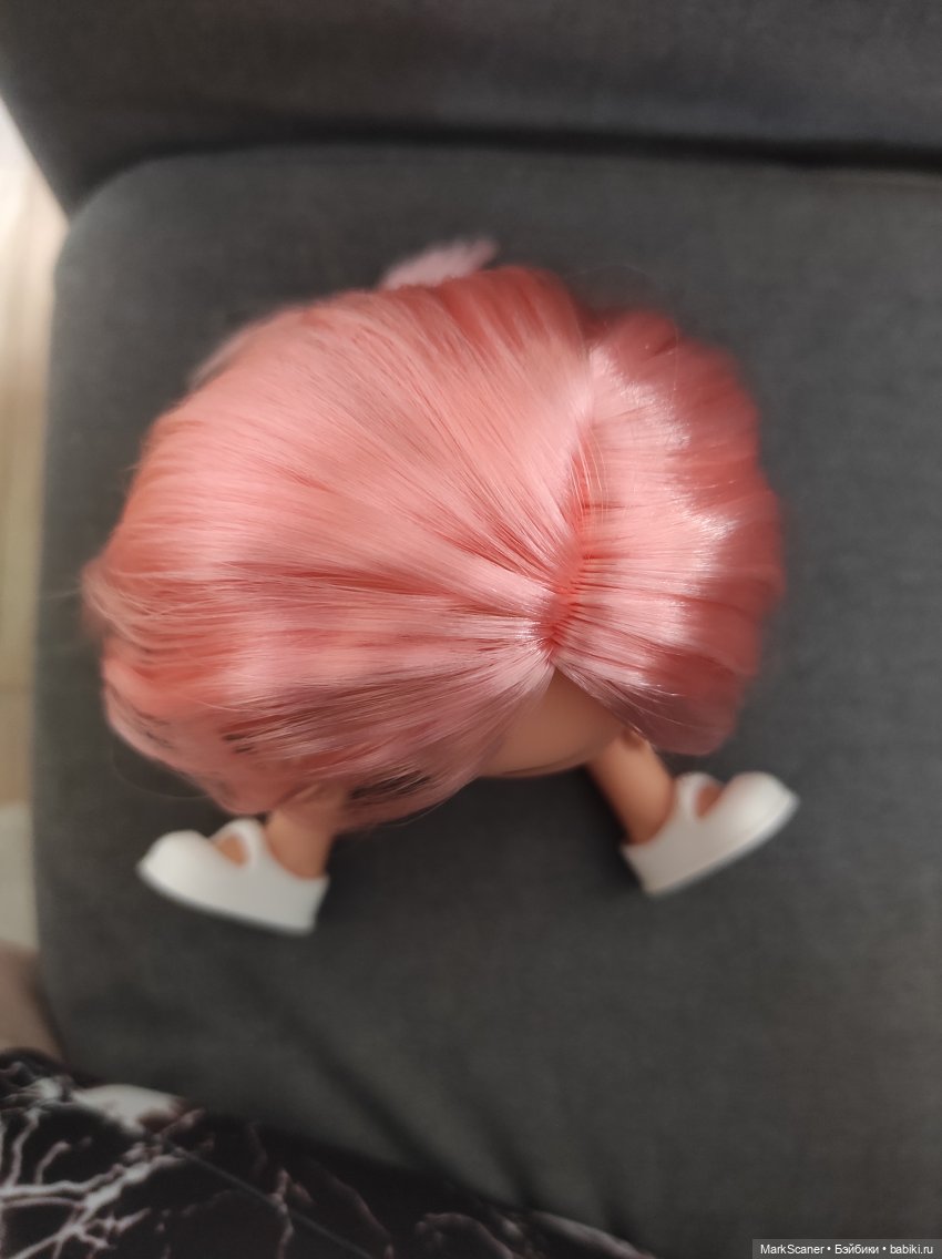 Тоже купила кучерявого китайчонка. Думала будет мальчик, но что-то пока не желает записываться в мальчики )) На фото в магазине цвет волос казался чуть другого оттенка, более насыщенного, в фиолетовый. На деле больше розово-сиреневый. Тон кожи тоже не как у оригиналов. Мой приехал с запахом С химическим, естественно. Сразу искупала малыша и запах пропал. Прошивка весьма неплохая. Не самая густая, если разгрести кучеряшки голова откровенно просвечивает. Но подозреваю, что более густую и не надо, иначе вместо кучеряшек был бы плотный колтун. Хорошая куколка. Но мне очень не хватает их родного запаха. Оригиналы пахнут волшебно, вся обнюхалась, как будто сунула нос в пакет со сладкими ванильными кукурузными палочками! Балдею!